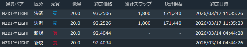 3/14に400万円を証拠金にしてキウイ円を92円40銭で40万ロング